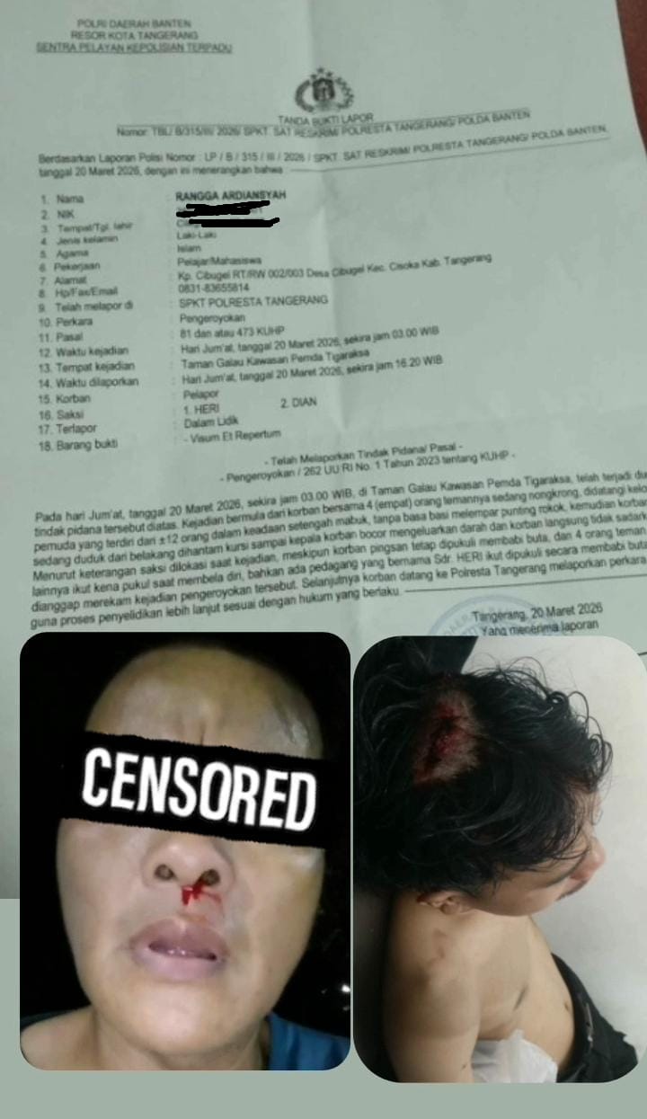 Korban pun sudah membuat laporan di Polresta Tangerang dengan nomor Laporan : LP / B / 315 / III /2026 / SPKT SAT RESKRIM / POLRESTA TANGERANG / POLDA BANTEN, pada tanggal 20 Maret 2026.