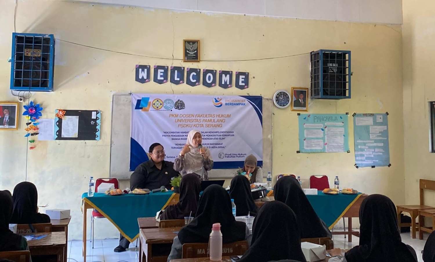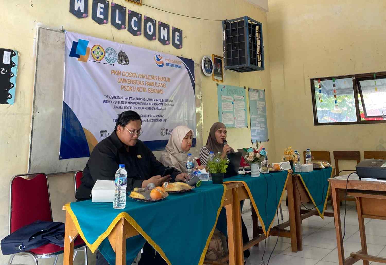 1. Hayati Nupus, S.Pd.,M.Pd. dosen Bahasa Inggris Hukum, mengusung tajuk “Menjembatani Hambatan Bahasa dalam Mengimplementasikan Proyek Pengabdian Masyarakat untuk Meningkatkan Kemahiran Bahasa Inggris di Sekolah Menengah Atas Islam.” Hasil dari kegiatan ini menunjukkan peningkatan pemahaman peserta dalam penggunaan bahasa Inggris, tumbuhnya kepercayaan diri dalam berkomunikasi, serta terbentuknya lingkungan belajar yang suportif untuk mengurangi hambatan bahasa di sekolah.