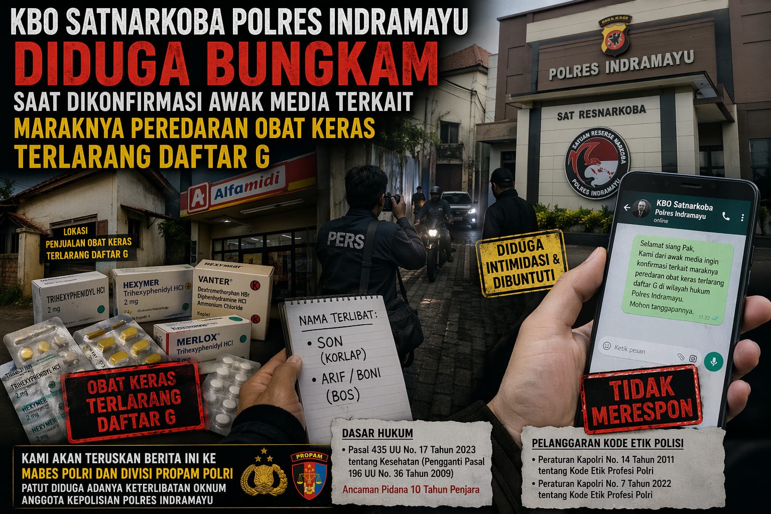 Muncul pertanyaan bagi kami tim media dengan adanya jaringan peredaran obat keras terlarang daftar G di wilayah hukum Polres Indramayu.
