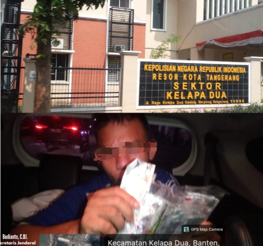 Kami tim media langsung menuju Polsek Kelapa Dua guna menyerahkan Seseorang yang kedapatan mengedarkan obat keras terlarang tersebut ke Polsek Kelapa Dua.