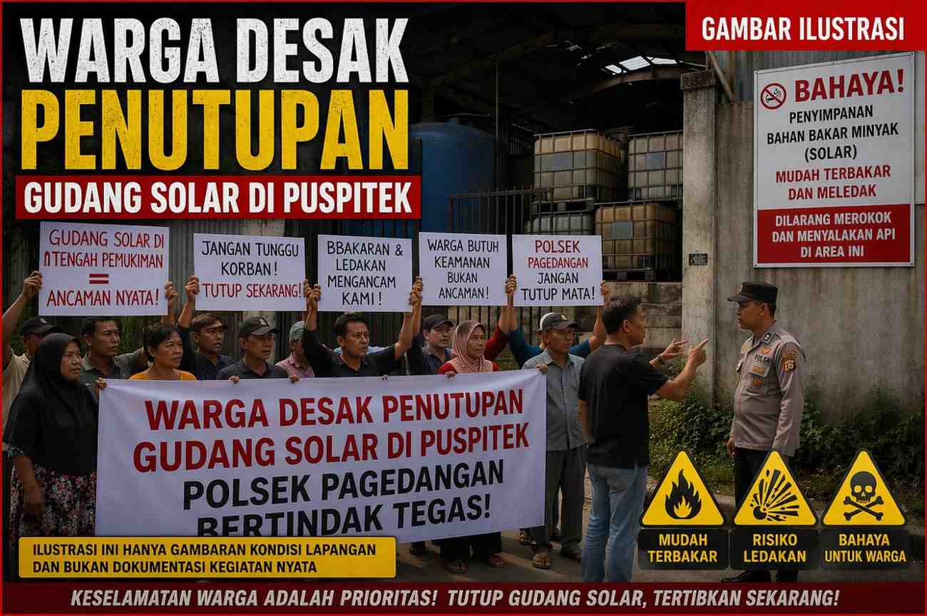 Kabupaten Tangerang, RedOwlNews.Com – Keresahan warga terkait dugaan kembali beroperasinya gudang penyimpanan bahan bakar minyak (BBM) jenis solar di kawasan perumahan Puspitek, Kecamatan Pagedangan, kian memuncak. Masyarakat secara tegas meminta agar lokasi tersebut segera ditutup demi keselamatan lingkungan.
